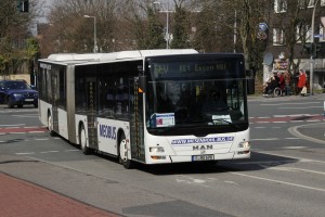Aufgrund von Bauarbeiten in den Osterferien zwischen Essen Hbf und Duisburg Hbf musste der gesamte Bahnverkehr eingestellt werden. Rund 50 Gelenkbusse von sämtlichen Unternehmen wurden benötigt um den Bedarf abzudecken. Ex Regional Verkehr Ruhr Lippe HSK-RO 437. |