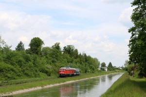 Kurz nachdem die 212 und ihr Sonderzug in Trostberg angekommen sind, fährt auch 232 569 wieder zurück, diesmal mit einem Kesselwagen als Anhang. |