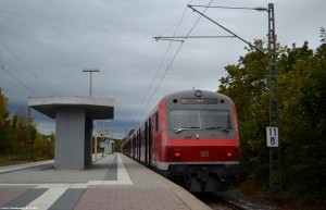 auf der mit modern designten Oberleitungsmasten ausgestatteten Überführungsbrücke in Steinbühl.