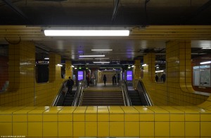 Dieses gelbe Viereck zwischen den Säulen ist nicht der Raucherbereich, sondern da stand bis Mitte 2019 ein Glaskubus, der über die Modernisierung der Hamburger Tunnelbahnhöfe informiert hat. Der Hohn daran: Die drei Harburger Bahnhöfe waren gar nicht aufgeführt, es waren nur die Stationen der Stammstrecke zu sehen. Schon einer Woche ist auch die Beleuchtung ausgefallen. Irgendwann wurde es SuS dann wohl zu peinlich und er wurde wieder entfernt. |