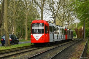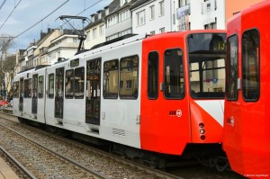 B-Wagen 2401 (ex 2101) wurde als 23. Fahrzeug der Serie 2100 zur Serie 2400 fertig saniert und wird in Kürze den 2000-km-Test antreten. Hier unterwegs auf der Neusser Straße am 03.03.2020.