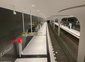 In den Treppenhäusern entsteht der erste harte Kontrast zwischen hell und dunkel. Man spürt HafenCity-Vibes. |