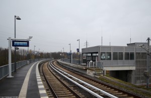 Die Gestaltung der Station im Niemandsland bei Berlin - manche würden es euphemistisch Tarifgebiet C nennen - ist brandenburgisch-schlicht. Hat man ja auch schon am Bahnsteigbild gesehen, Überdachung zum Beispiel is nich. Wohlgemerkt, ein richtiges Treppenhaus mit Wendelstruktur haben wohl auch nicht so viele Bahnhöfe und schon gar nicht Haltepunkte. |