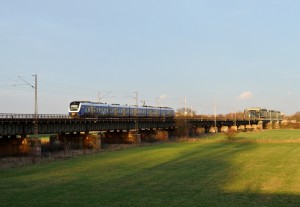 Eine RS1 auf dem Weg nach Verden (Aller) durchfährt die Osterholzer Feldmark und erreicht in wenigen Sekunden den Bahnhof Bremen-Mahndorf.